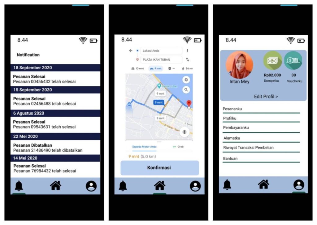 Mahasiswi asal Nganjuk ini mengatakan, aplikasi tersebut juga memiliki fitur home sebagai pusat untuk pengguna dan pelaku usaha melakukan transaksi. Di fitur ini, tersedia berbagai macam pelaku usaha yang menawarkan dagangannya lengkap dengan identitas atau nama tokonya.